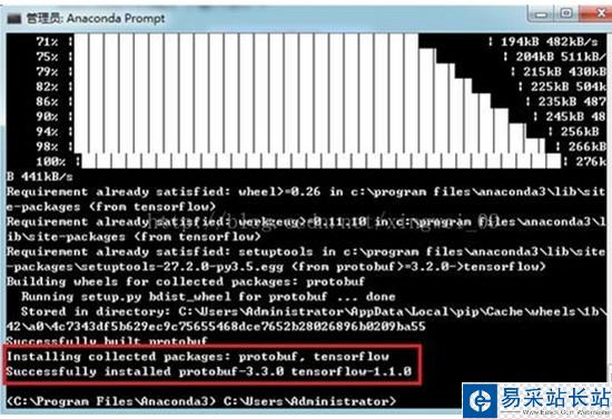 然后,坐等安裝成功。成功界面如下:(下圖為借鑒,實際是tensorflow 1.2.0)