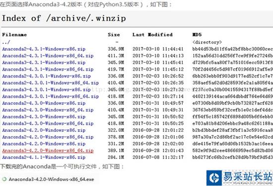 在頁面選擇Anaconda-4.2版本(對應Python3.5版本)