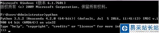 管理員身份打開Anaconda Prompt,輸入“python”下圖:
