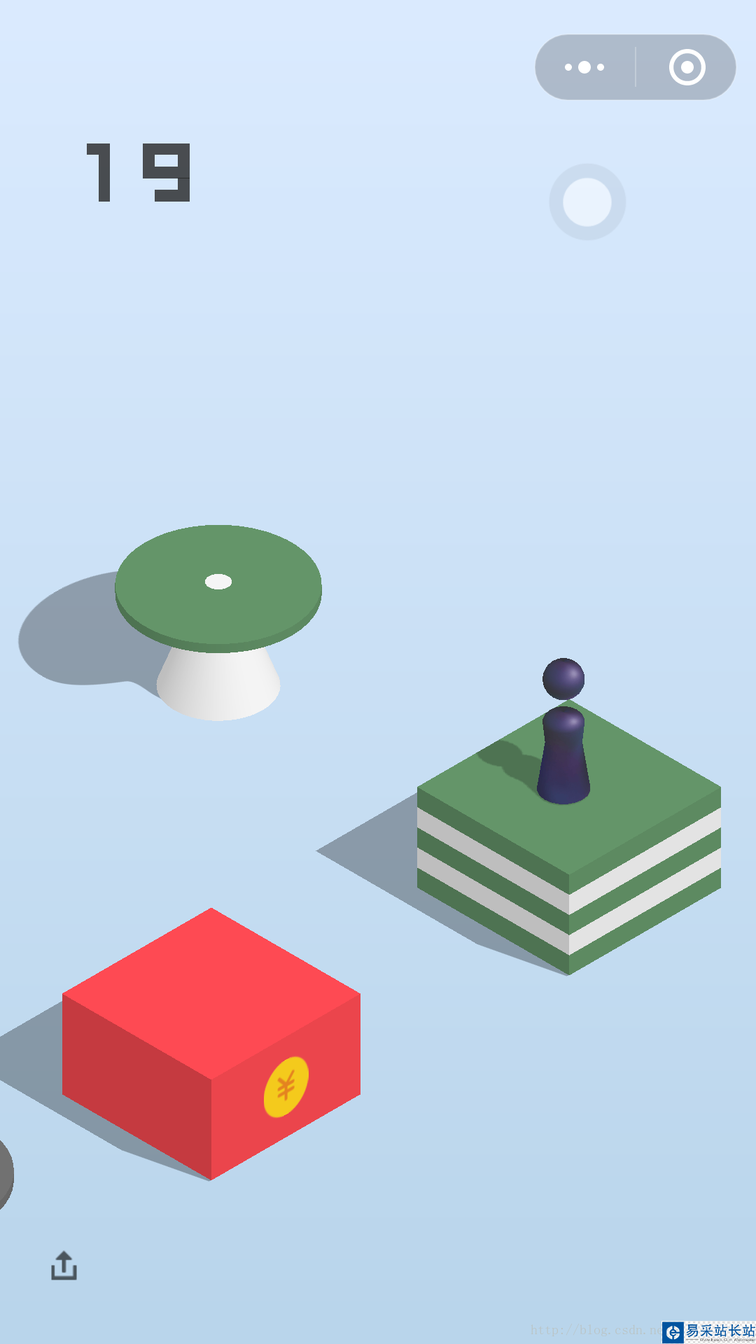 觀察到小人跳到物塊中心之后,下一個物塊中心就會出現白色小圓點,同樣可以匹配圖中白色小圓點,從而獲得跳躍目標點的坐標,計算跳躍的距離。