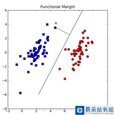 假設(shè)(圖二)中的直線表示一個(gè)超面,為了方面觀看顯示成一維直線,特征都是超面維度加一維度的,圖中也可以看出,特征是二維,而分類器是一維的。如果特征是三維的,分類器就是一個(gè)平面。假設(shè)超面的解析式為