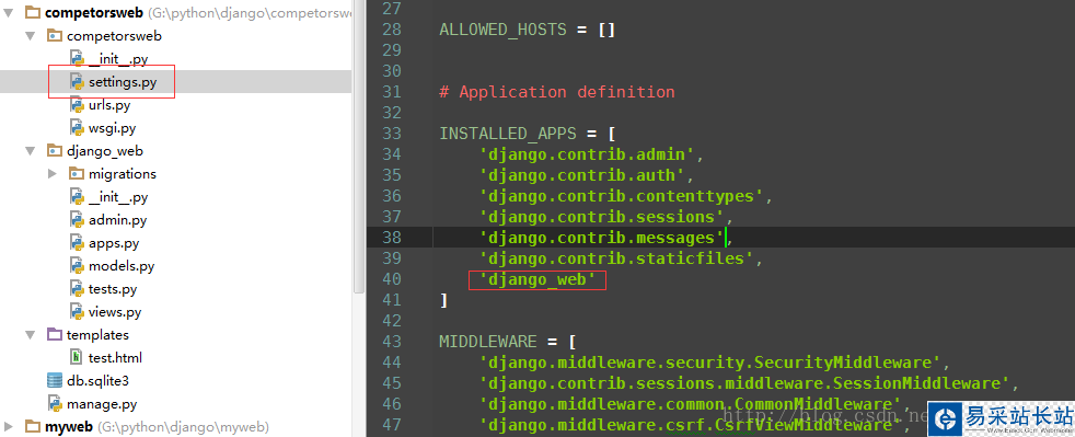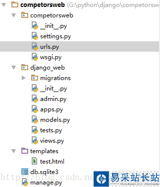 接著你會在pycharm中發現,多了一個django_web文件夾。如下將截圖: