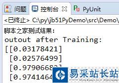 # -*- coding:utf-8 -*-#! python2import numpy as npdef nonlin(x, deriv = False): if(deriv == True): return x*(1-x) else: return 1/(1+np.exp(-x))#input datasetX = np.array([[0,0,1], [0,1,1], [1,0,1], [1,1,1]])#output datasety = np.array([[0,1,1,0]]).Tsyn0 = 2*np.random.random((3,4)) - 1 #the first-hidden layer weight valuesyn1 = 2*np.random.random((4,1)) - 1 #the hidden-output layer weight valueprint "武林站長站測試結果:"for j in range(60000): l0 = X #the first layer,and the input layer l1 = nonlin(np.dot(l0,syn0)) #the second layer,and the hidden layer l2 = nonlin(np.dot(l1,syn1)) #the third layer,and the output layer l2_error = y-l2 #the hidden-output layer error if(j%10000) == 0: print "Error:"+str(np.mean(l2_error)) l2_delta = l2_error*nonlin(l2,deriv = True) l1_error = l2_delta.dot(syn1.T) #the first-hidden layer error l1_delta = l1_error*nonlin(l1,deriv = True) syn1 += l1.T.dot(l2_delta) syn0 += l0.T.dot(l1_delta)print "outout after Training:"print l2