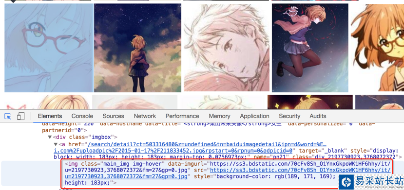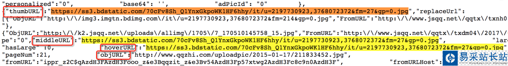 通過分析可以知道,前面兩個是縮小的版本,hoverURL 是鼠標移動過后顯示的版本,objURL 應該是我們需要的,可以分別打開這幾個網址看看,發(fā)現(xiàn) objURL 的那個最大最清晰。