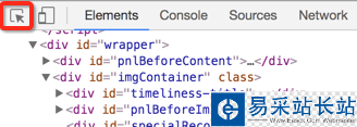 這個時候,就要用開發(fā)者工具!我們回到上一頁面,調出開發(fā)者工具,我們需要用的是左上角那個東西:(鼠標跟隨)。