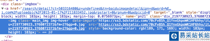 我們復制這個地址,然后到剛才的一堆源代碼里搜索一下,發(fā)現(xiàn)了它的位置,但是這里我們又疑惑了,這個圖片有這么多地址,到底用哪個呢?我們可以看到有thumbURL,middleURL,hoverURL,objURL