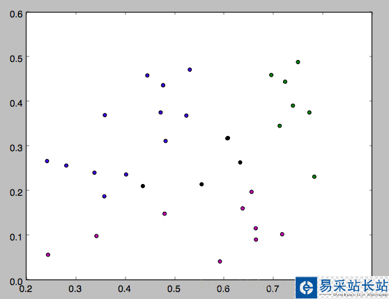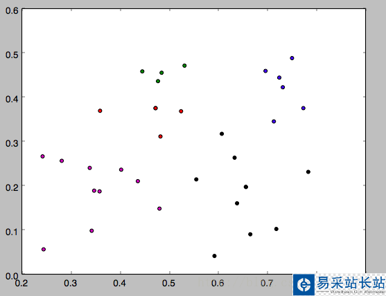 # -*- coding: utf-8 -*- """Excercise 9.4"""import numpy as npimport pandas as pdimport matplotlib.pyplot as pltimport sysimport randomdata = pd.read_csv(filepath_or_buffer = '../dataset/watermelon4.0.csv', sep = ',')[["密度","含糖率"]].values########################################## K-means ####################################### k = int(sys.argv[1])#Randomly choose k samples from data as mean vectorsmean_vectors = random.sample(data,k)def dist(p1,p2): return np.sqrt(sum((p1-p2)*(p1-p2)))while True: print mean_vectors clusters = map ((lambda x:[x]), mean_vectors) for sample in data: distances = map((lambda m: dist(sample,m)), mean_vectors) min_index = distances.index(min(distances)) clusters[min_index].append(sample) new_mean_vectors = [] for c,v in zip(clusters,mean_vectors): new_mean_vector = sum(c)/len(c) #If the difference betweenthe new mean vector and the old mean vector is less than 0.0001 #then do not updata the mean vector if all(np.divide((new_mean_vector-v),v) < np.array([0.0001,0.0001]) ): new_mean_vectors.append(v) else: new_mean_vectors.append(new_mean_vector) if np.array_equal(mean_vectors,new_mean_vectors): break else: mean_vectors = new_mean_vectors #Show the clustering resulttotal_colors = ['r','y','g','b','c','m','k']colors = random.sample(total_colors,k)for cluster,color in zip(clusters,colors): density = map(lambda arr:arr[0],cluster) sugar_content = map(lambda arr:arr[1],cluster) plt.scatter(density,sugar_content,c = color)plt.show()