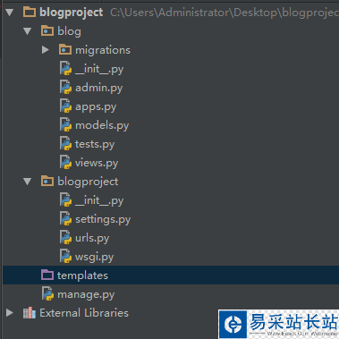 python manage.py startpapp blog打開 blogproject/ 目錄下的 settings.py 文件,找到