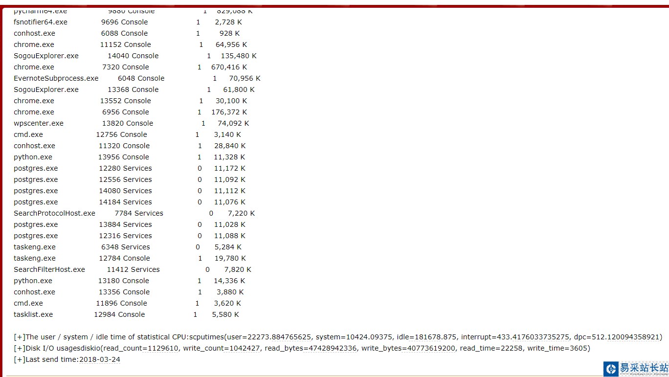 然后獲取正在后臺運行的程序。在獲取CPU和磁盤I/O的內存,然后通過郵箱發送‘