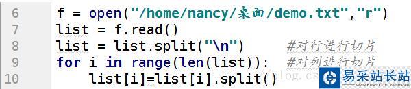 思路就是把先按換行符進行切片,再對每一行的字符再進行一次切片操作,代碼如下: