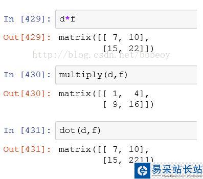 1、當為array的時候,默認d*f就是對應元素的乘積,multiply也是對應元素的乘積,dot(d,f)會轉化為矩陣的乘積, dot點乘意味著相加,而multiply只是對應元素相乘,不相加