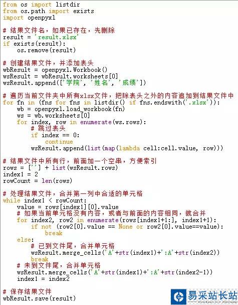 某老師為不同學院講授“Python程序設(shè)計”課程,并根據(jù)不同專業(yè)和課程特點選用了董付國老師系列教材《Python程序設(shè)計(第2版)》《Python程序設(shè)計基礎(chǔ)(第2版)》《Python可以這樣學》《Python程序設(shè)計開發(fā)寶典》之一。期末時填寫各學院成績單Excel文件,這些Excel文件的格式大致相同,但又略有區(qū)別,就是有的“學院”列進行了單元格合并,而有的則沒有。