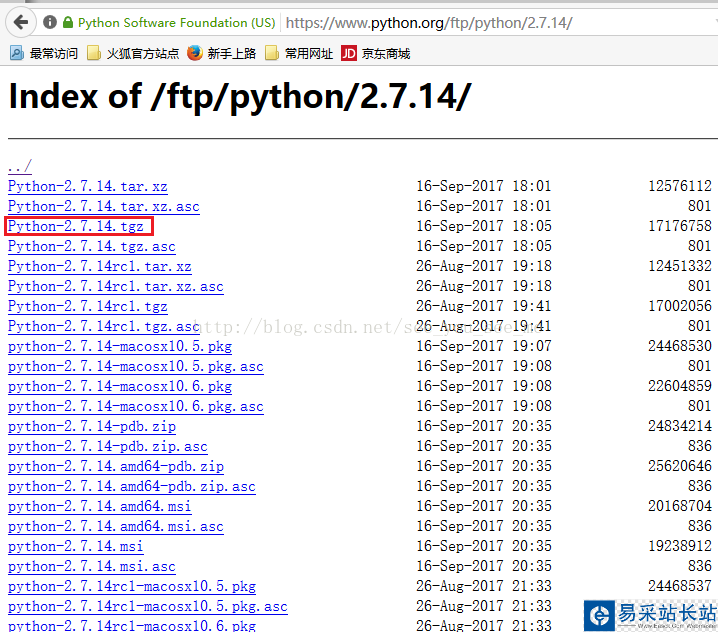 點擊這里的Python-2.7.14.tgz可以直接下載安裝包文件,也可以使用wget來直接下載,如果需要安裝的服務器無法直接訪問外網,可以使用下載安裝包文件的方式,如果可以訪問外部推薦使用wget方式。