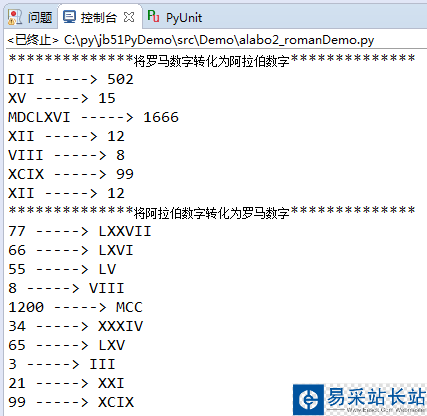 #!usr/bin/env python#encoding:utf-8'''''__Author__:沂水寒城功能:阿拉伯?dāng)?shù)字和羅馬數(shù)字的互相轉(zhuǎn)換'''def transform_alabo2_roman_num(one_num): ''''' 將阿拉伯?dāng)?shù)字轉(zhuǎn)化為羅馬數(shù)字 ''' num_list=[1000, 900, 500, 400, 100, 90, 50, 40, 10, 9, 5, 4, 1] str_list=["M", "CM", "D", "CD", "C", "XC", "L", "XL", "X", "IX", "V", "IV", "I"] res='' for i in range(len(num_list)): while one_num>=num_list[i]: one_num-=num_list[i] res+=str_list[i] return resdef transform_roman_num2_alabo(one_str): ''''' 將羅馬數(shù)字轉(zhuǎn)化為阿拉伯?dāng)?shù)字 ''' define_dict={'I':1,'V':5,'X':10,'L':50,'C':100,'D':500,'M':1000} if one_str=='0': return 0 else: res=0 for i in range(0,len(one_str)): if i==0 or define_dict[one_str[i]]<=define_dict[one_str[i-1]]: res+=define_dict[one_str[i]] else: res+=define_dict[one_str[i]]-2*define_dict[one_str[i-1]] return res # #下面這種寫法也可以 # for i in range(len(one_str)): # if i > 0 and define_dict[one_str[i]] > define_dict[one_str[i - 1]]: # res -= define_dict[one_str[i - 1]] # res += define_dict[one_str[i]] - define_dict[one_str[i - 1]] # else: # res += define_dict[one_str[i]] # return resif __name__ == '__main__': print '**************將羅馬數(shù)字轉(zhuǎn)化為阿拉伯?dāng)?shù)字**************' one_str_list=['DII','XV','MDCLXVI','XII','VIII','XCIX','XII'] for one_str in one_str_list: print one_str,'----->',transform_roman_num2_alabo(one_str) print '**************將阿拉伯?dāng)?shù)字轉(zhuǎn)化為羅馬數(shù)字**************' one_num_list=[77,66,55,8,1200,34,65,3,21,99] for one_num in one_num_list: print one_num,'----->',transform_alabo2_roman_num(one_num)結(jié)果如下:
