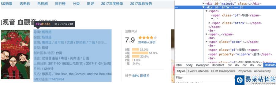 爬取豆瓣熱度在Top100以內的電影的一些信息,包括電影的名稱、豆瓣評分、導演、編劇、主演、類型、制片國家/地區、語言、上映日期、片長、IMDb鏈接等信息。