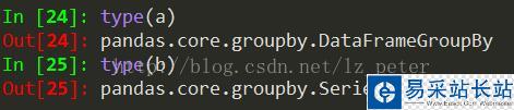 a = action.groupby('userid') b = action.groupby('userid')['actionTime'] type(a) type(b) 分組后我們可以看到a和b的數據類型是DataFrameGroupBy和SeriesGroupBy
