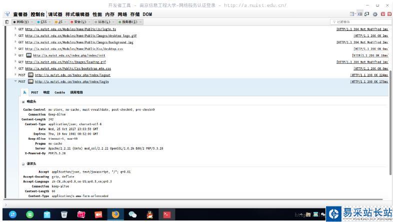 import requests#登錄地址post_addr="http://a.nuist.edu.cn/index.php/index/login"#構造頭部信息post_header={ 'Host': 'a.nuist.edu.cn', 'User-Agent':'Mozilla/5.0 (X11; Linux x86_64; rv:55.0) Gecko/20100101 Firefox/55.0', 'Accept': 'application/json, text/javascript, */*; q=0.01', 'Accept-Language':'zh-CN,zh;q=0.8,en-US;q=0.5,en;q=0.3', 'Accept-Encoding': 'gzip, deflate', 'Content-Type': 'application/x-www-form-urlencoded', 'X-Requested-With':'XMLHttpRequest', 'Referer':'http://a.nuist.edu.cn/index.php?url=aHR0cDovL2RldGVjdHBvcnRhbC5maXJlZm94LmNvbS9zdWNjZXNzLnR4dA==', 'Content-Length': '67', 'Cookie':'_gscu_1147341576=059821653286gq10; sunriseUsername=123441534;/ sunriseDomain=NUIST;sunriseRememberPassword=true; sunrisePassword=123456;/ PHPSESSID=hb0o9bkct2f6ge164oj3vj0me5;think_language=zh-CN', 'Connection':'keep-alive',}#構造登錄數據post_data={'domain':'NUIST', 'enablemacauth':'0', 'password':'MTgzMzEw', 'username':'xxxxxxx' } #發送post請求登錄網頁z=requests.post(post_addr,data=post_data,headers=post_header)4) 但是發現一個問題就是上面的程序只能自己使用,如果換一個賬號密碼登錄那么又要使用瀏覽器抓數據包,煩…仔細查看上面的步驟發現想要寫一個其它賬號不用抓包也可以登錄的程序的難點在于構造post_data程序中password被加密過,如果能夠知道它的加密方式,寫一個通用的(在本校內)程序還是非常容易的.
