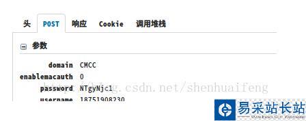 3) 查看POST選項卡中的內容,其中的變量和參數都需要保存下來,這里面可以看到其中的password是被加過密的.如果只是登錄自己的賬號密碼,那么程序到此可以結束.把其中的數據用自己抓到的數據替換使用下面代碼即可登錄校園網.