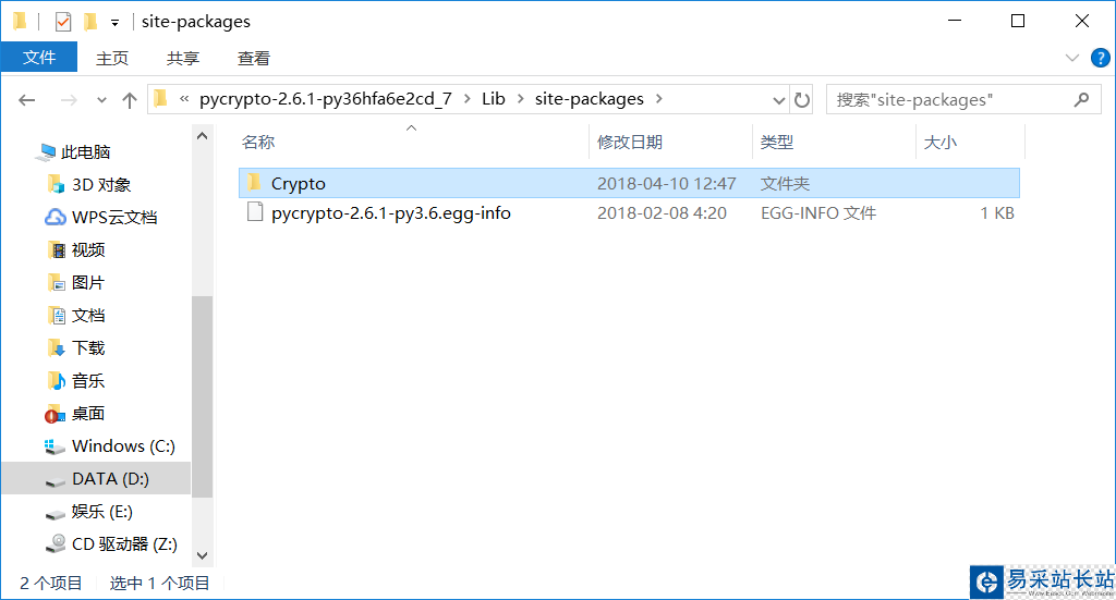 復制整個Crypto文件夾,粘貼到剛才說的第三方庫的路徑里去就可以用了,那個路徑一般都是在D:/Python/Lib/site-packages。