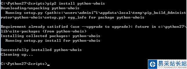 補充:本機安裝了Python2與Python3兩個版本,這里就使用了pip2安裝python-whois模塊,如下圖所示: