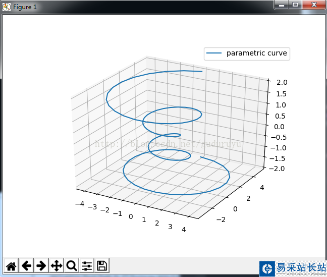 import matplotlib as mpl from mpl_toolkits.mplot3d import Axes3D import numpy as np import matplotlib.pyplot as plt mpl.rcParams['legend.fontsize'] = 10 fig = plt.figure() ax = fig.gca(projection='3d') theta = np.linspace(-4 * np.pi, 4 * np.pi, 100) z = np.linspace(-2, 2, 100) r = z**2 + 1 x = r * np.sin(theta) y = r * np.cos(theta) ax.plot(x, y, z, label='parametric curve') ax.legend() plt.show()