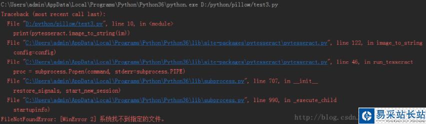 這里要說明的是安裝Tesseract-OCR后,其不會被默認(rèn)添加至環(huán)境變量path中,已導(dǎo)致如下報(bào)錯(cuò):