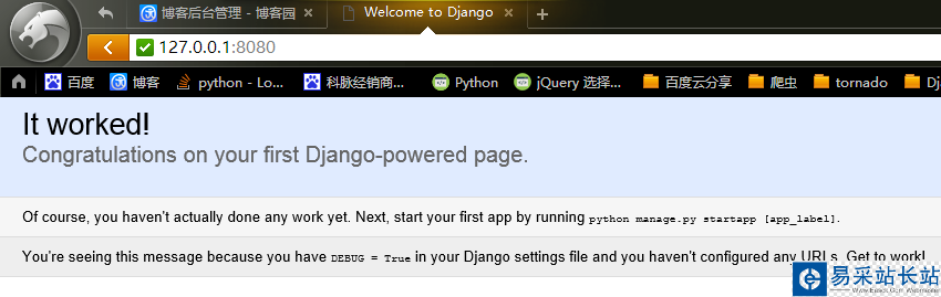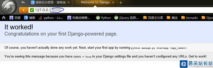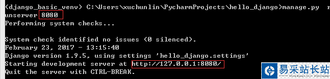 我們啟動django開發服務器,輸入命令 manage.py runserver 默認的端口是8000.