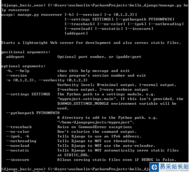 我們先停掉django的服務,按ctrl + c 就可以停掉服務 。然后查看django的runserver的命令解釋。