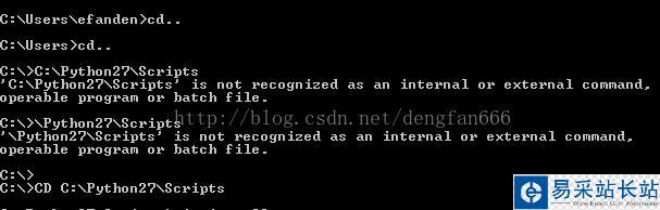 比如我的在C:/Python27/Scripts這個目錄下,先切換到d盤,再進入這個路徑。