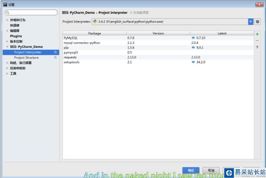 2. 選擇彈出界面左上角的“項目(Project): PyCharm_Demo”—>“project Interpreter”;