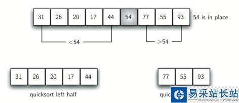 快速排序(quick sort)是一種分治排序算法。該算法首先 選取 一個(gè)劃分元素(partition element,有時(shí)又稱為pivot);接著重排列表將其 劃分 為三個(gè)部分:left(小于劃分元素pivot的部分)、劃分元素pivot、right(大于劃分元素pivot的部分),此時(shí),劃分元素pivot已經(jīng)在列表的最終位置上;然后分別對(duì)left和right兩個(gè)部分進(jìn)行 遞歸排序。
