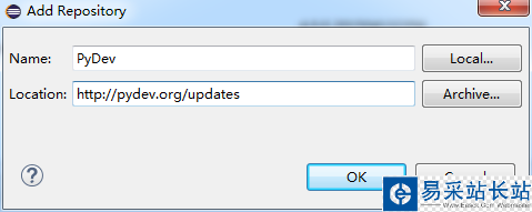 輸入name,然后location(http://pydev.org/updates),點擊OK