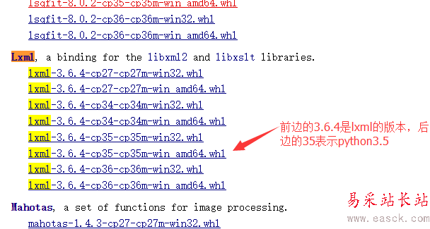 注意:打開網址后ctrl+F,搜索LXML,選擇對應版本,一般是win32,而不選win_arm64,即使電腦是win64