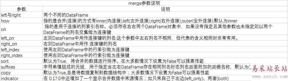 此外還有outer,ringt,left等連接方式,用關鍵詞how的進行表示。