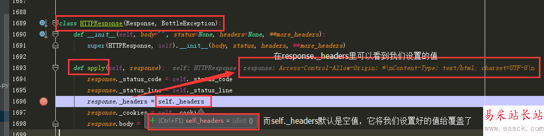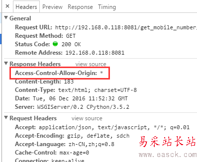 @hook('after_request')def enable_cors(): response.headers['Access-Control-Allow-Origin'] = '*'而事實上是按找出來的解決方法添加后還是出現錯誤,查看瀏覽器輸出的http頭并沒有看到我們剛剛增加的Access-Control-Allow-Origin:*,如下圖: