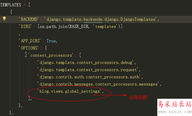 3、在setting.py中的TEMPLATES中的OPTIONS配置項中添加global_settings函數(shù)