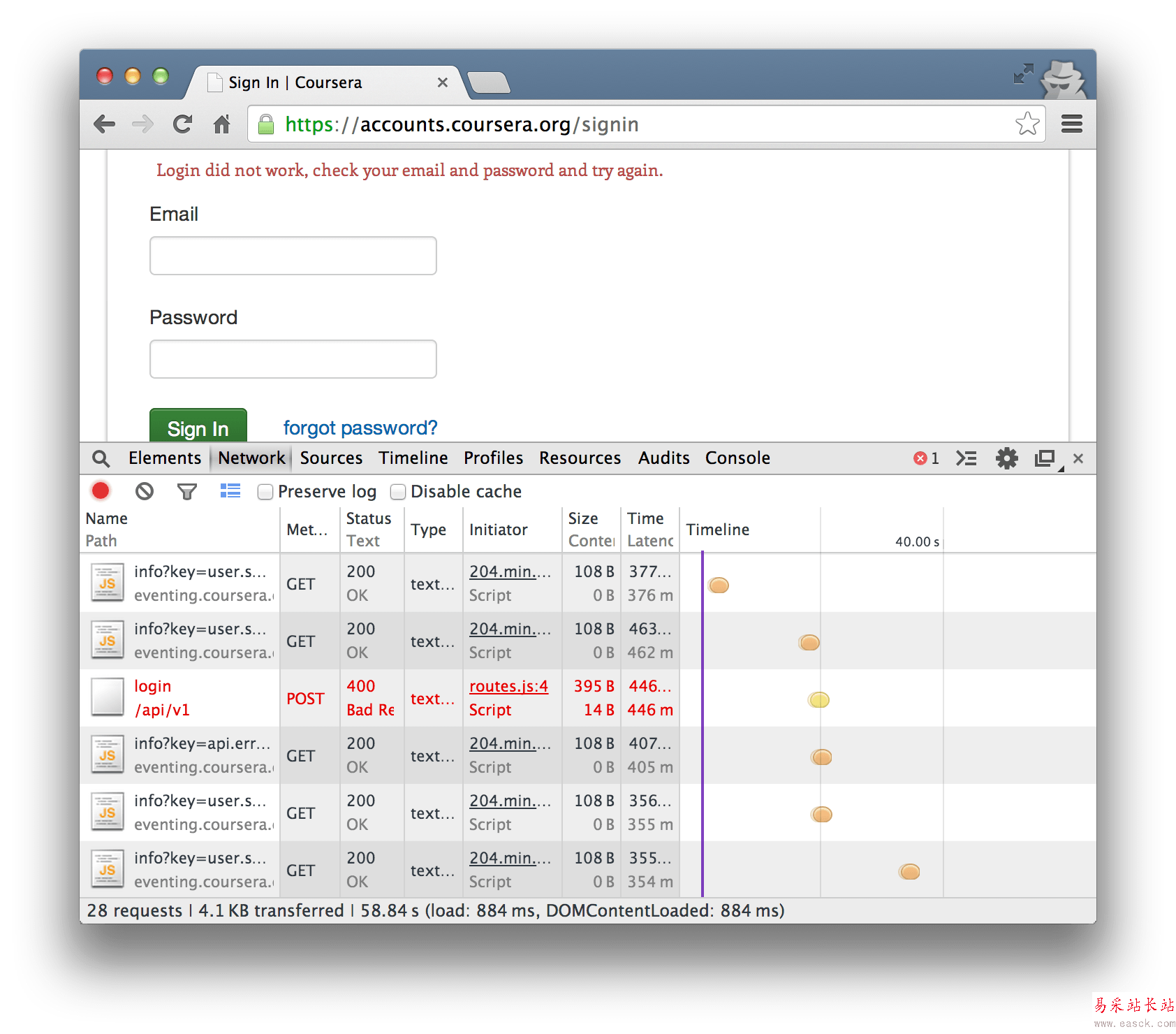 要想模擬登錄,我們先找到登錄的頁面,然后利用google的Developer Tools