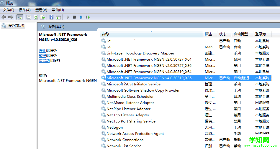 最近在使用win7電腦的時候越用越卡了,于是打開任務管理器,發現有一個進程一直占用了20%以上的cpu資源,難怪越來越慢,于是查Mscorsvw.exe是什么軟件的進程,看到居然是.net Microsoft Framework 的進程,所以解決方法是禁用這個進程的服務,當然不用卸載.net,禁用進程就解決了問題,查看進程已經沒有此進程占用大量cpu了,禁用方法如下:
