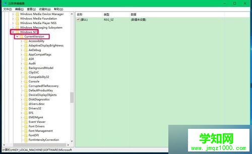 3、在Microsoft的展開項中再依次展開:Windows NT/CurrentVersion;