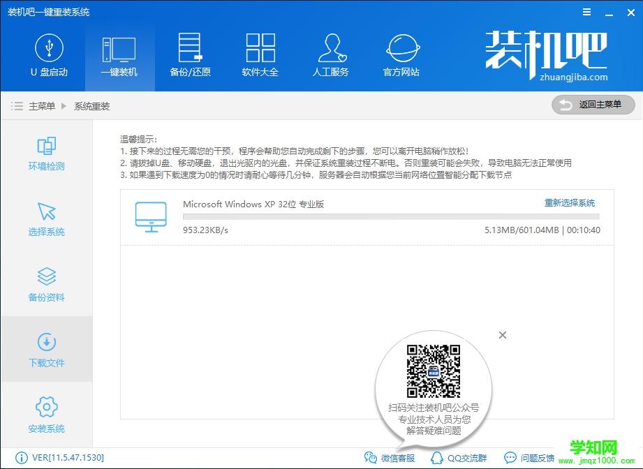 5.裝機吧一鍵重裝系統軟件下載xp系統鏡像中,請耐心等待,因為xp系統鏡像的體積比較小,所有很快就會下載完成的。