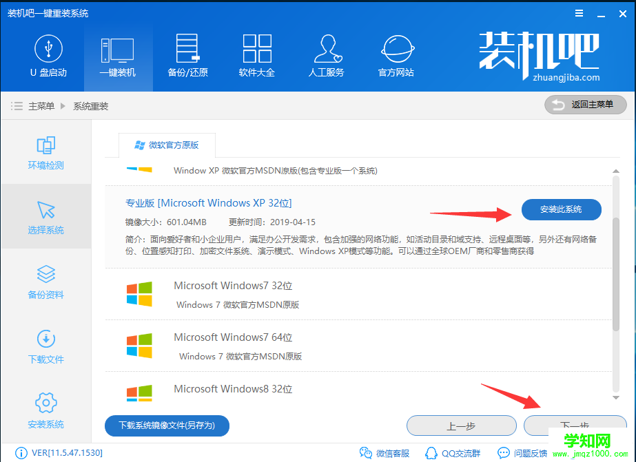 3.在出現的選擇系統界面中點擊xp系統,這時xp系統的右側會出現一個安裝此系統的按鈕,點擊該按鈕,進入下一步。