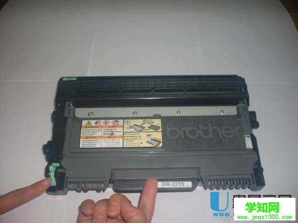 第一步:從機(jī)器上撥出硒鼓組件,按下綠色拉手,將硒鼓及粉盒分離: