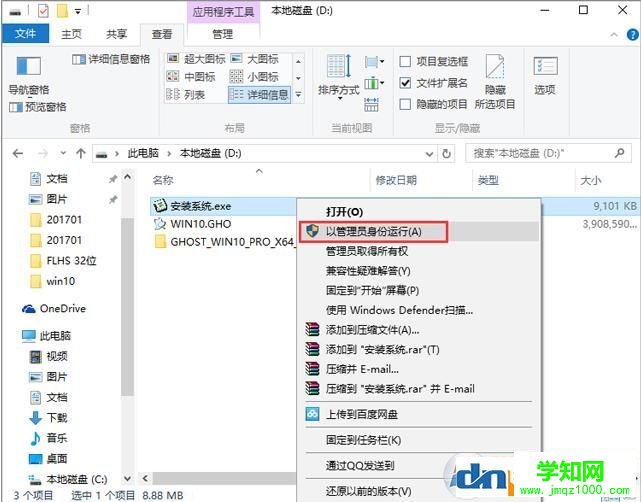 2、解壓文件夾中一般都會且一個 “安裝系統.EXE”(也有可能叫GHOST安裝器.exe),我們雙擊打開,如果是win8/win10要右鍵以管理員身份打開(執行前注意備份C盤重要資料!)