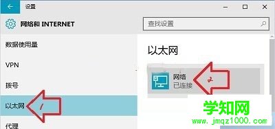 第二步、在網絡和Internet界面,點擊左側“以太網”,在右側窗口點擊“網絡”;