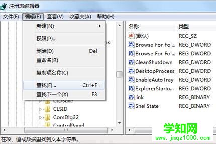 2、在注冊表編輯器頁面中點擊編輯選項,選擇查找,在查找中輸入需要卸載的軟件即可。
