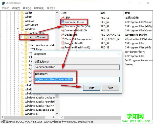 步驟3、在右側你可以找到數值名稱為ProgramFilesDir的項目,里面的默認數值數據為“C:/Program Files”,將這個值修改為你所需要設定的路徑,比如“D:/Program Files”,然后確定,退出注冊表編輯器