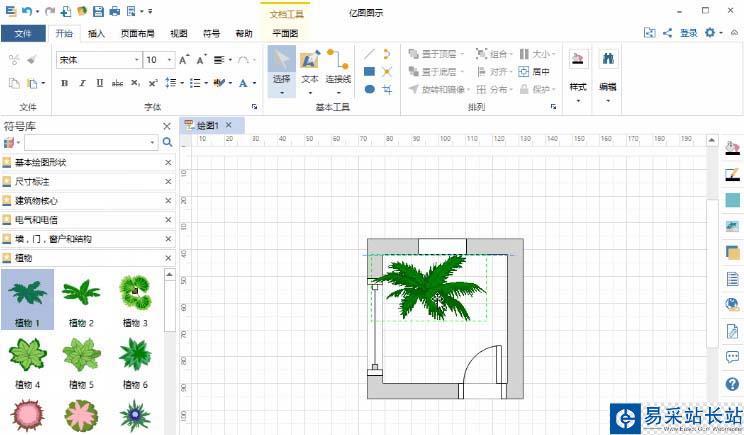 5、還可以添加一些綠色植物來美化一下,直接從植物符號庫中拖拽喜歡的植物到繪圖頁面就行。