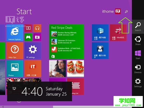 Win8.1 Update 右上角新增的“搜索框”和Charms菜單中的“搜索”功能一致的,一起來看圖: