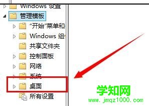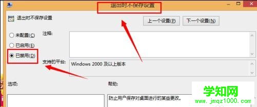 4.找到”用戶配置——管理模板——桌面“(左面部分),然后在右側(cè)找到”退出時不保存設(shè)置“,設(shè)置成禁用即可。如圖