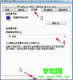 在打開“監(jiān)視器”對(duì)話框后,將“屏幕刷新頻率”更改為“85赫茲”,單擊確定即可。